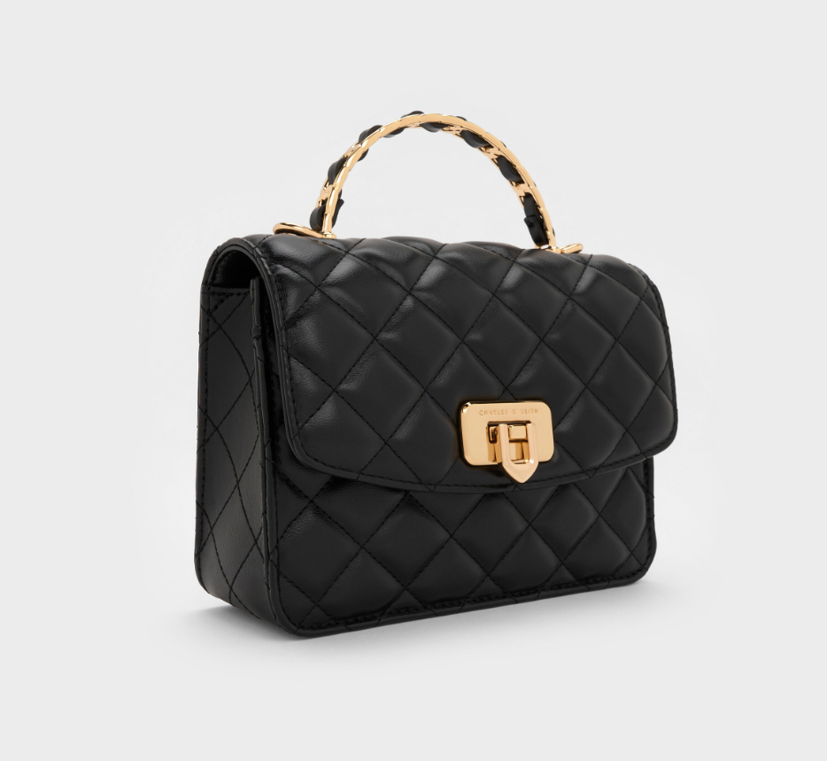 Charles & Ke*th - Cressida Quilted Top Handle Bag With Bag Charms - Gift Box - Black