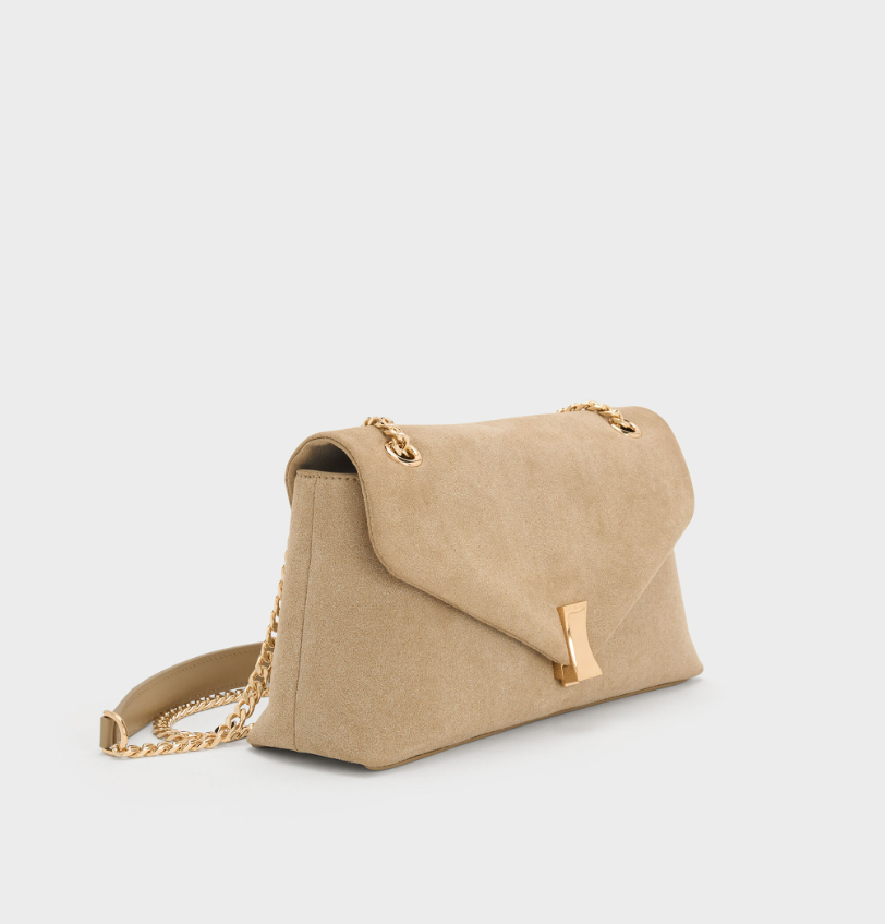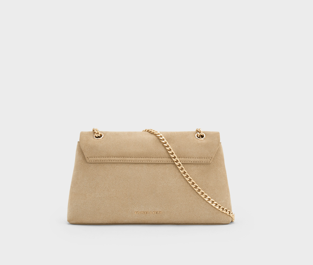 Charles & Ke*th - Lilibet Recycled Suede Chain-Strap Bag - Nutmeg Beige
