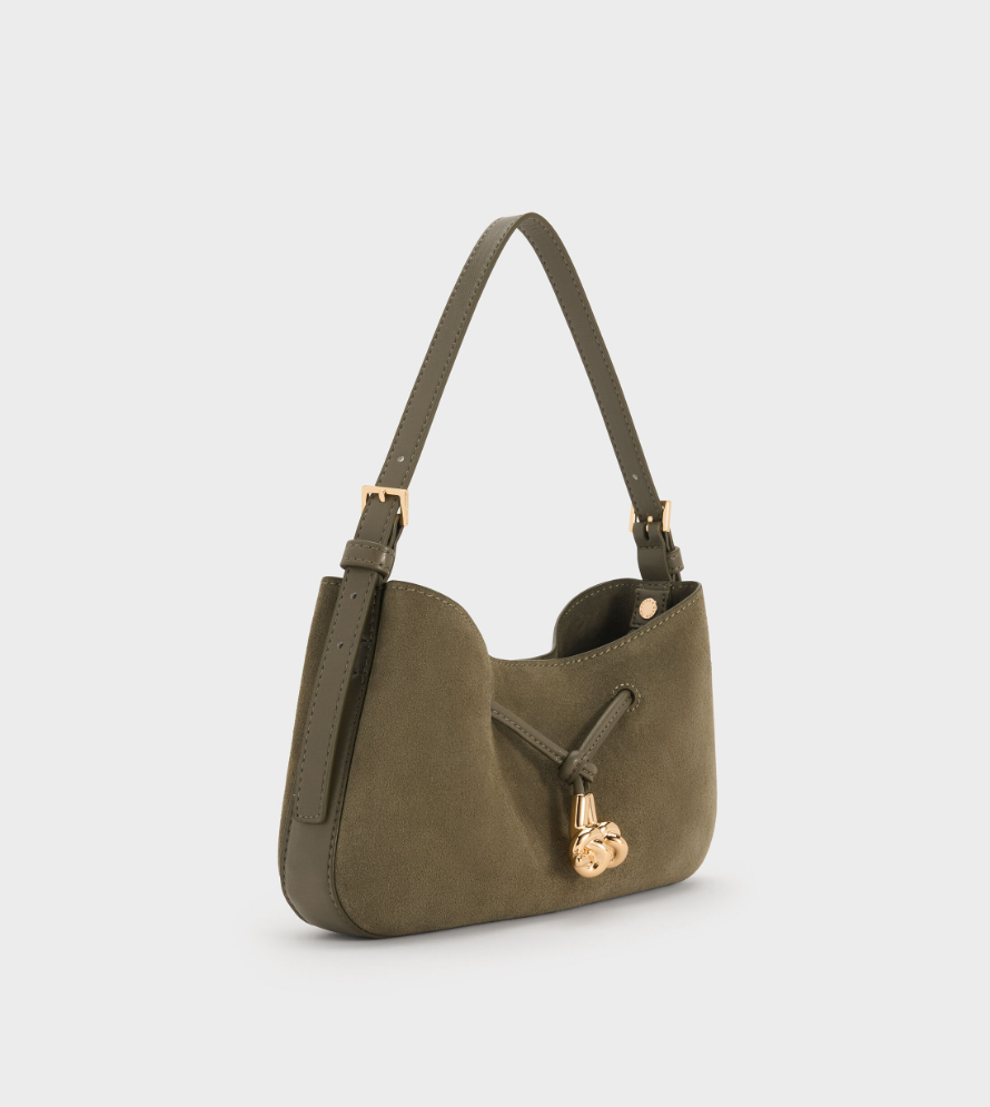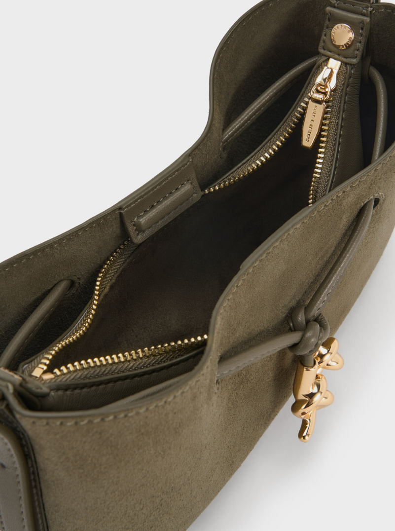 Charles & Ke*th - Mila Recycled Suede Shoulder Bag - Deep Olive