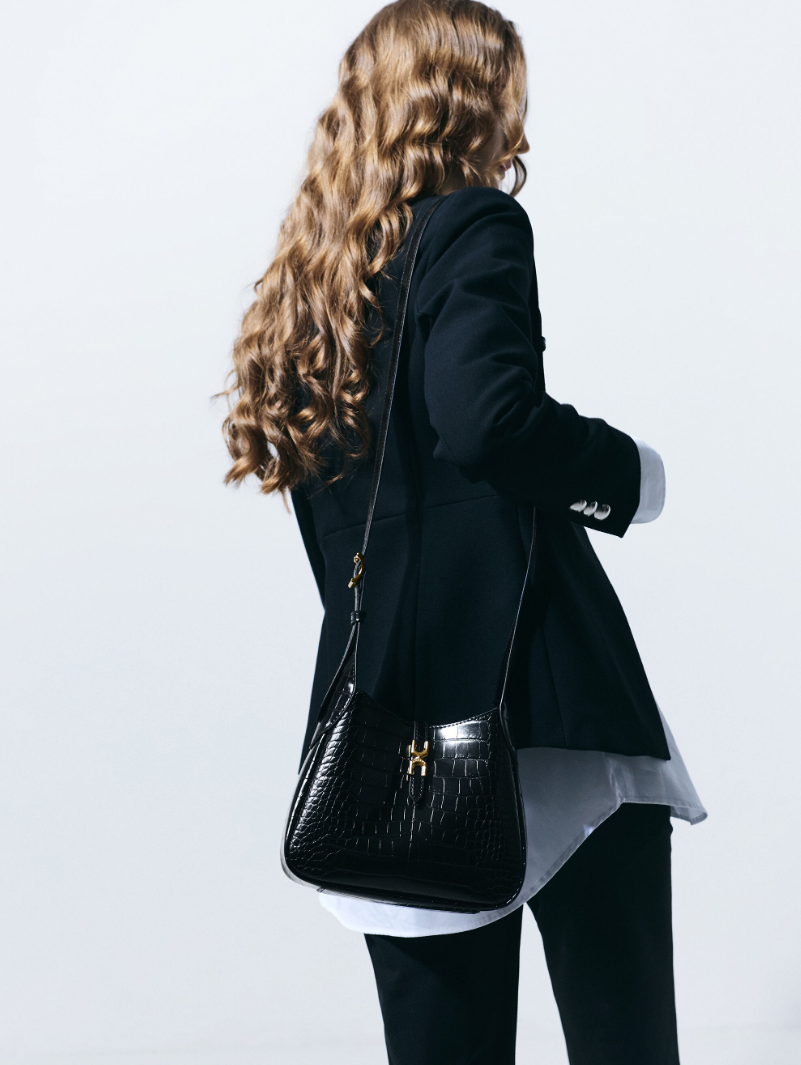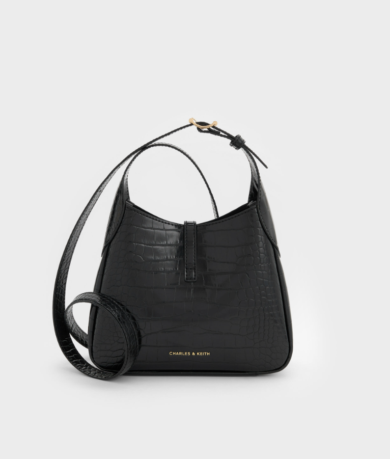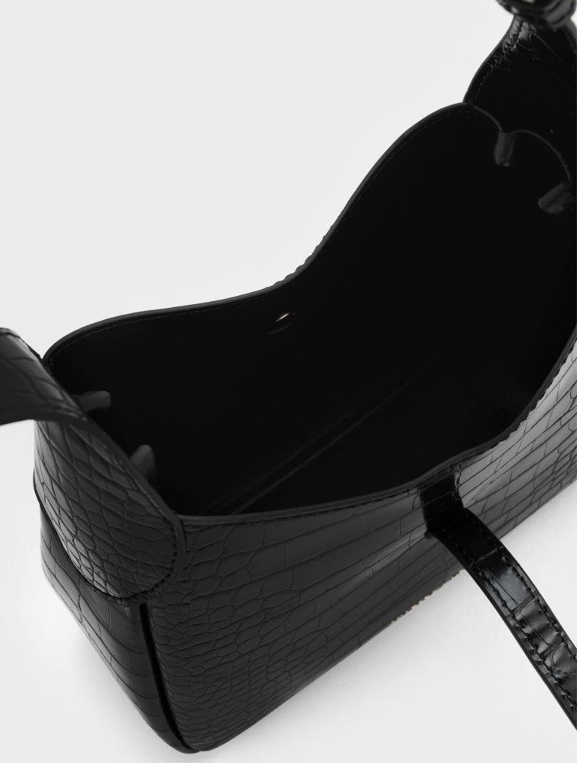 Charles & Ke*th - Mini Adalyn Croc-Effect Hobo Bag - Black Croco