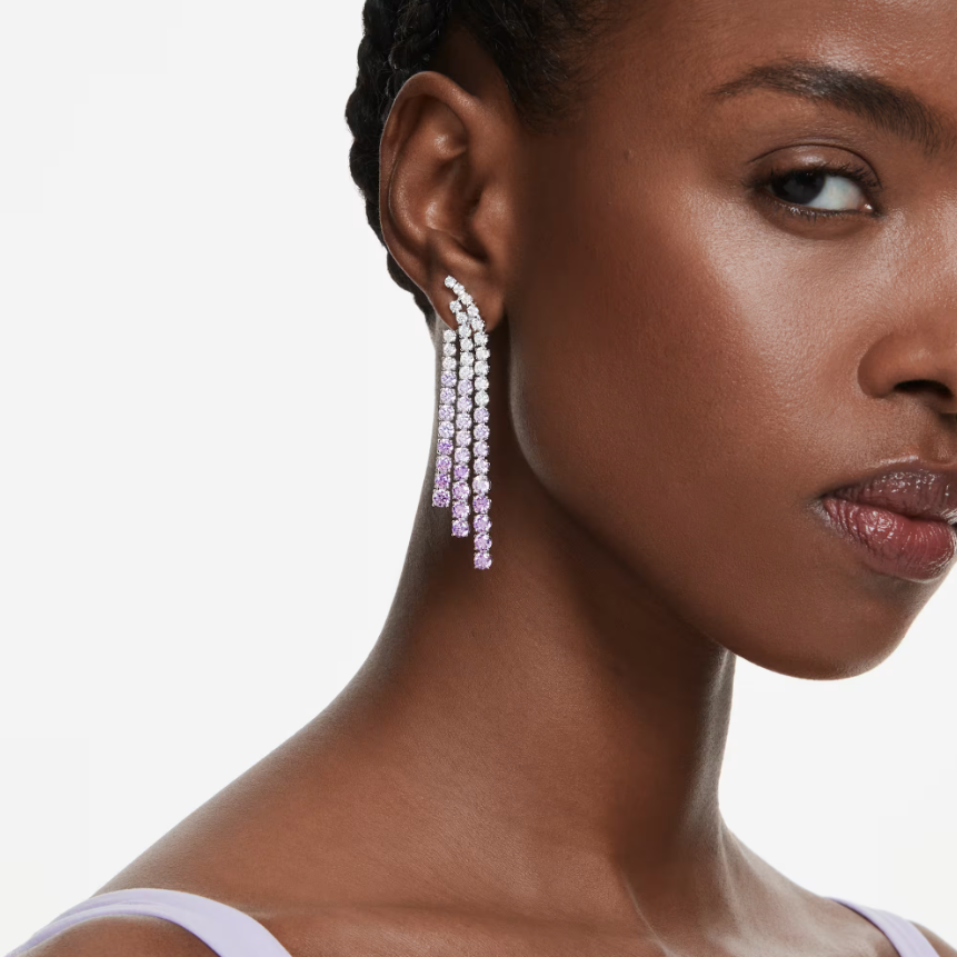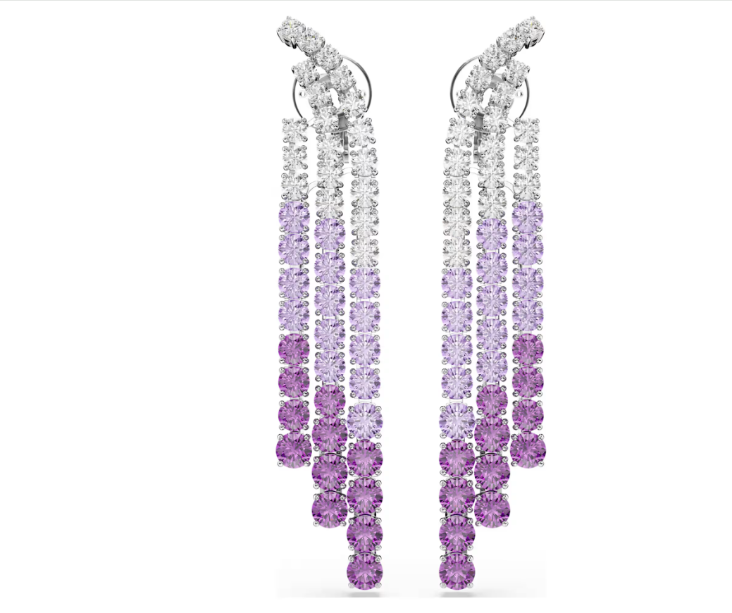Swar*vski - Matrix clip earrings Colour gradient, Round cuts, Purple, Rhodium plated - 5705831
