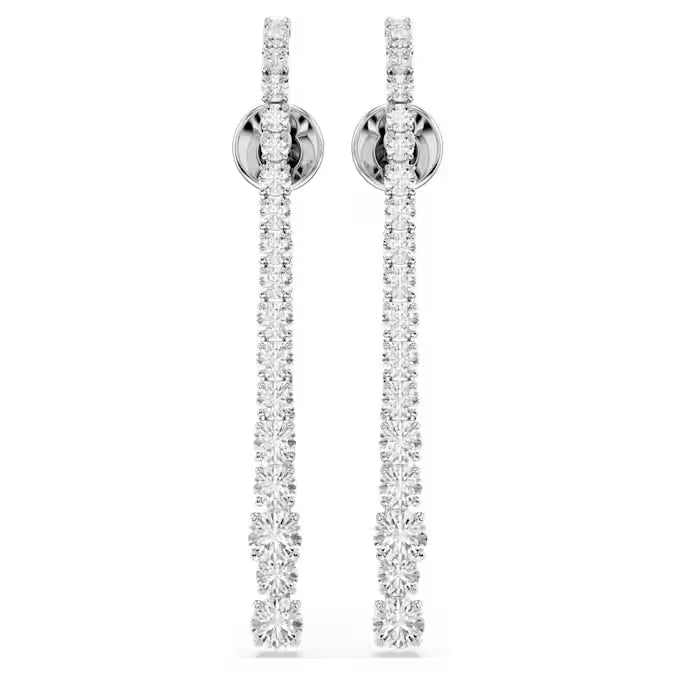 Swar*vski - Matrix drop earrings Gradient of round cuts, White, Rhodium plated - 5709257