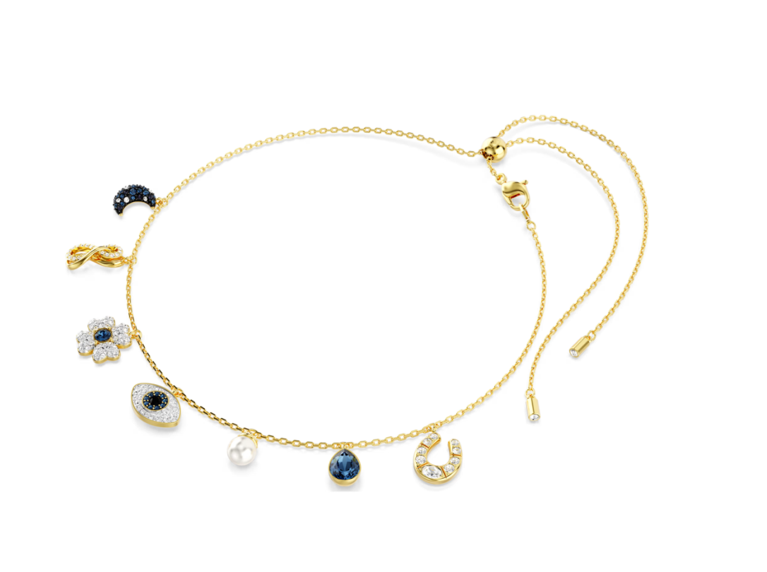 Swar*vski - Symbolica choker Crystal pearl, Moon, infinity, clover, evil eye and horseshoe, Blue, Gold-tone plated - 5692164