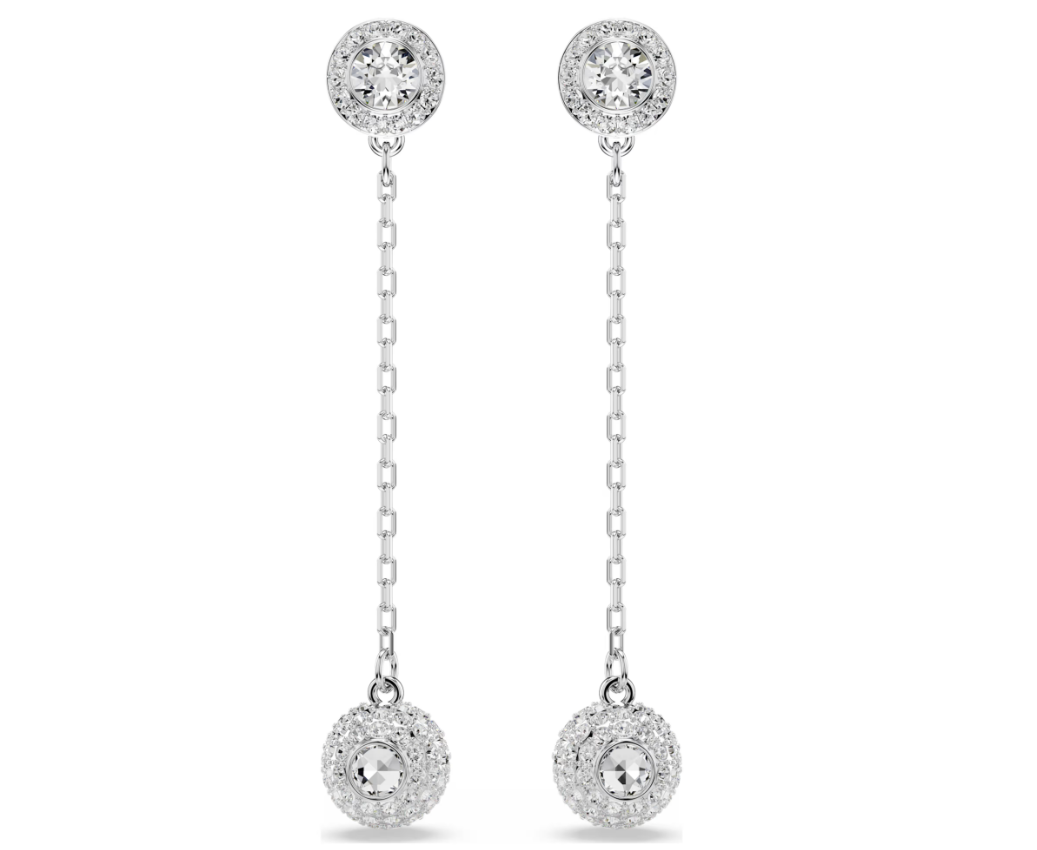 Swar*vski - Una Angelic drop earrings Round cut, White, Rhodium plated - 5732273